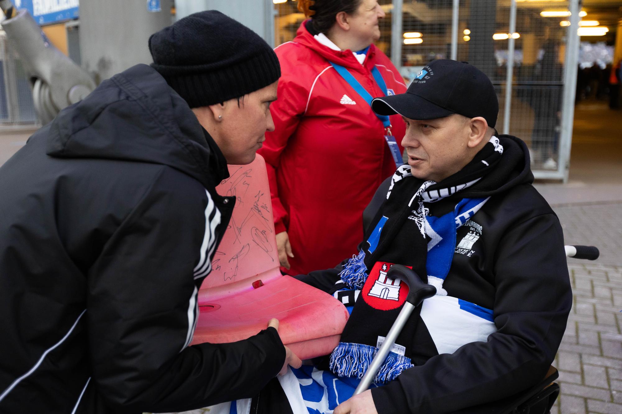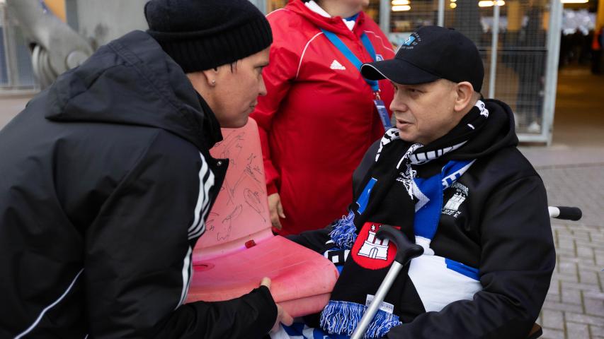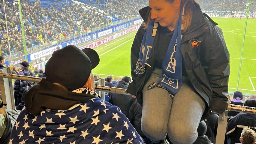 Dennis, eingefleischter HSV-Fan aus Bad Segeberg, hat sich schon die ganze Woche auf das ausverkaufte Spiel gegen die Borussen aus Dortmund gefreut. So machten sich die Wunscherfüller Alex und Lars auf den Weg nach Bad Segeberg, um mit Dennis und seinem Bruder Nils am Samstagnachmittag die Rothosen anzufeuern. Der Wünschewagen wurde natürlich mit HSV-Bettwäsche vorbereitet, sodass die Vorfreude auf ein tolles Spiel groß war. Vor dem Spiel wurden wir sehr nett von dem HSV-Integrationsteam empfangen. Dennis bekam einen Stadionsitz, der von allen Spielern des HSV signiert wurde. Eine tolle Erinnerung und ein tolles Geschenk! Dann der Anpfiff: Dennis und Nils feuerten kräftig, gestärkt nach einer Stadionbratwurst, ihren HSV an. Ein ausgeglichenes Spiel bis zur 64. Minute! Doch dann kassierte der HSV den Gegentreffer. Aber die HSV-Kicker hielten sich wacker und konnten in der 7. Nachspielminute der zweiten Halbzeit einen Ausgleich erzielen. Die Stimmung im Stadion und bei Dennis und Nils war dann natürlich überwältigend. Eine richtig tolle Atmosphäre! Mit diesem guten Gefühl machten wir uns nach dem Schlusspfiff auf den Rückweg nach Bad Segeberg. Sicher feierten die beiden Brüder dann noch den mehr als verdienten Ausgleich ihres HSV.