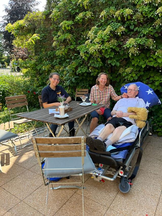 Wir waren beeindruckt, mit welcher Liebe und Fürsorge Dieters Ehefrau ihn begleitet, ihm immer zur Seite steht und sich dennoch selbst nicht vergisst. So ging für Sonja und mich ein schöner, warmer Sommertag mit wunderschönem Ausblick vom Pflegeheim aus auf den Lütjensee zu Ende.