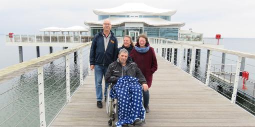 Freundlich wurden wir begrüßt von der Familie mit Kind und Hund. Erwartungsvoll waren die Augen unseres Fahrgastes Martin*. Er wünschte, noch einmal etwas Neues zu erleben und wollte mit seiner Frau nach Boltenhagen auf die Seebrücke. Der gebürtige Düsseldorfer lebt mit seiner Frau Sabine* seit acht Jahren in Norddeutschland und freute sich auf die Seeluft.